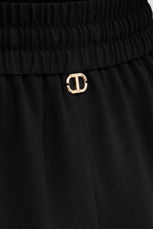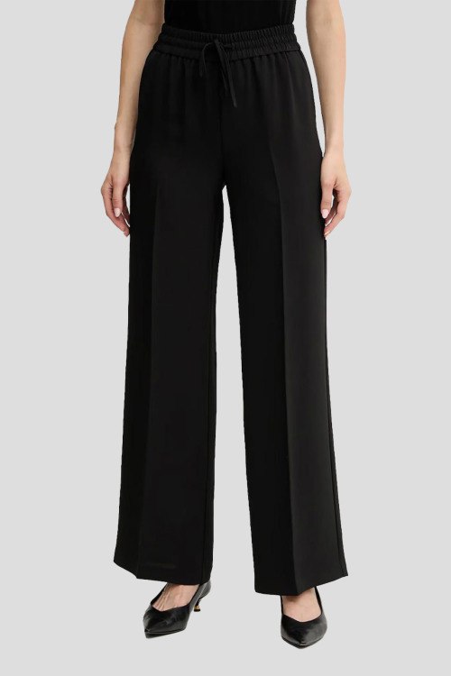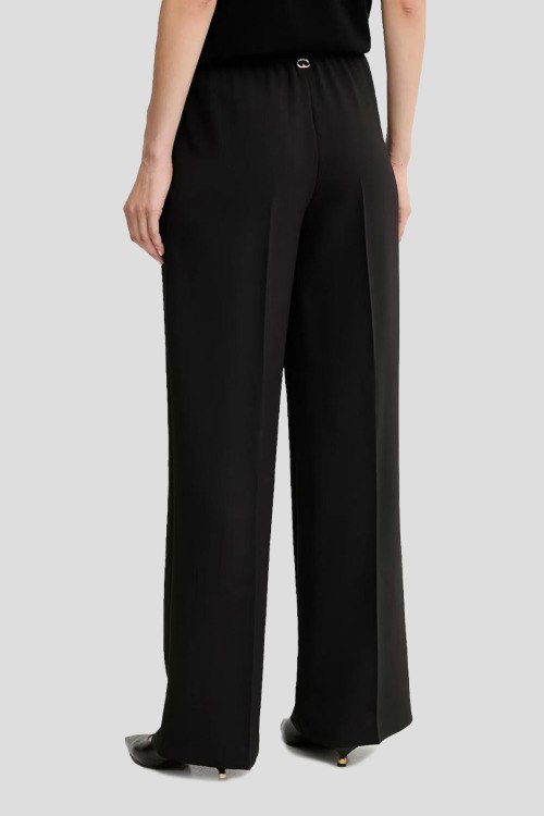 Детали: Женские черные классические брюки от TWINSET (Твинсет). Дизайн со стрелками, высокая посадка, эластичный пояс на завязках, полная длина