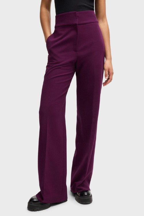 Детали: Женские фиолетовые брюки-палаццо Himia из полиэстера и вискозы от Hugo by Hugo Boss (Хуго бай Хуго Босс). Классическая длина, высокая посадка, застежка на молнию, расклешенная модель