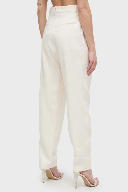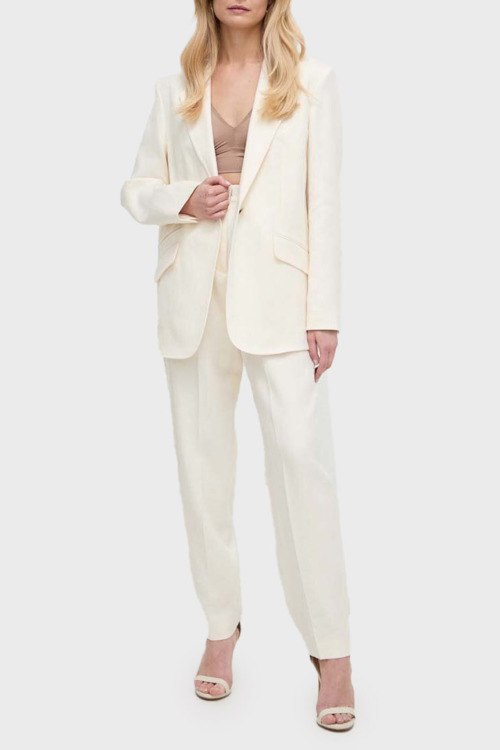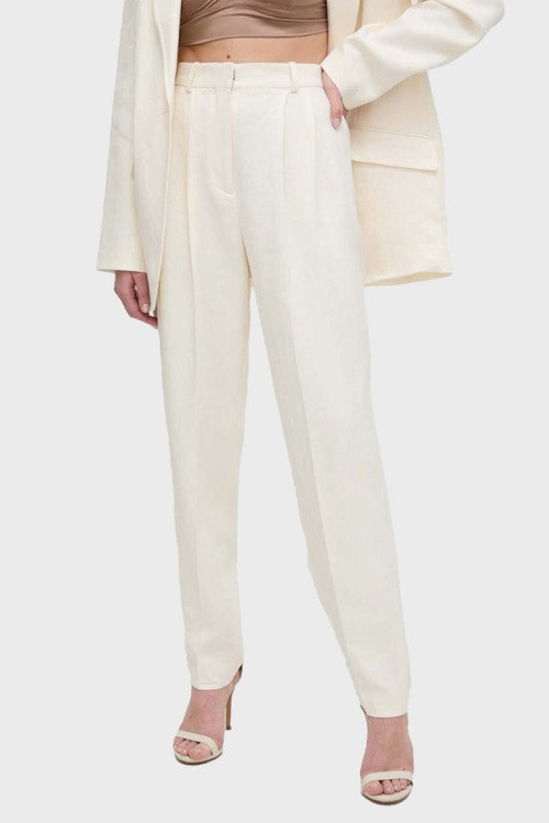 Детали: Женские льняные брюки молочного оттенка Tefike от Hugo Boss (Хуго Босс). Дизайн с защипами и стрелками, завышенная талия с петлями для ремня, боковые карманы, полная длина