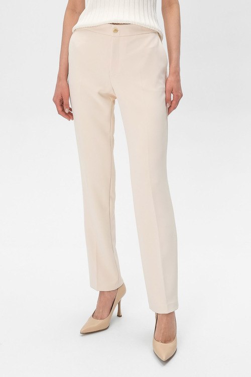 Детали: Женские брюки молочного оттенка от TWINSET (Твинсет). Дизайн со стрелками, боковые карманы, значок с логотипом сзади на поясе, классическая длина