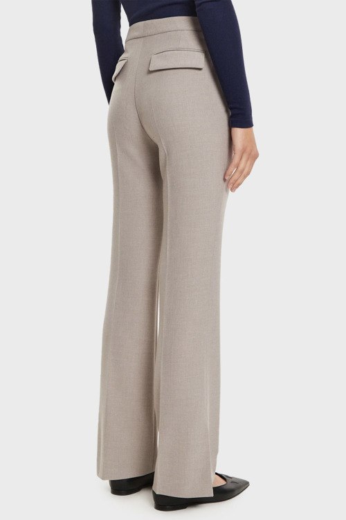 Детали: Женские серые брюки Tubeka4 из вискозного микса от Hugo Boss (Хуго Босс). Классическая длина. высокая посадка, застежка на молнию и пуговицу, прорезные карманы, по бокам разрезы на манжеты, прямой силуэт