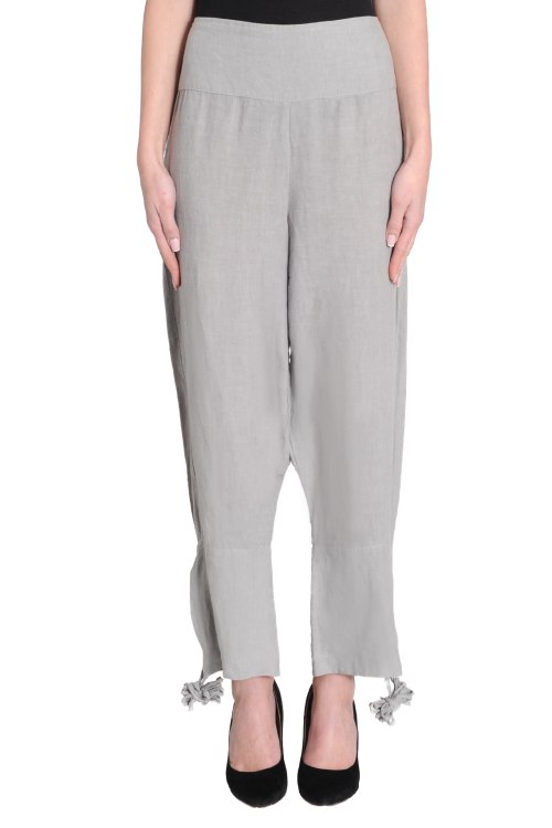 Детали: Однотонные брюки свободного кроя со средней посадкой пояса, низ украшен разрезами и завязками
