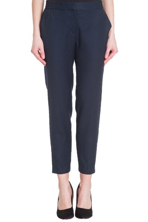 Детали: Укороченные брюки прямого кроя, в поясе по бокам на резинке. два боковых кармана