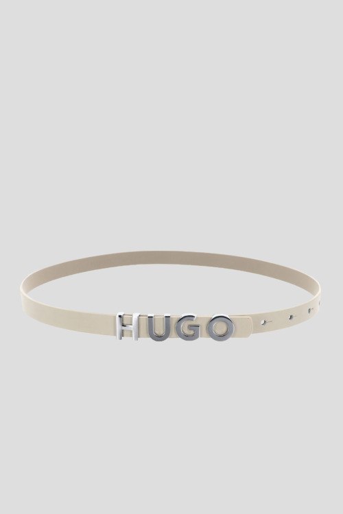 Детали: Женский светло-бежевый кожаный ремень Zula от Hugo Boss (Хуго Босс). Модель из гладкой кожи, металлическая пряжка в виде логотипа. Ширина: 1,5 см