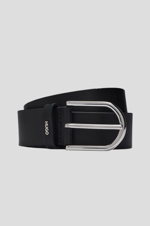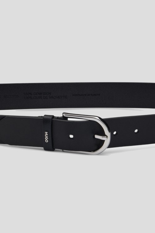Детали: Женский черный кожаный ремень Zoey-S_Sz35 от Hugo by Hugo Boss (Хуго бай Хуго Босс). Широкая модель, регулируемый размер, металлическая пряжка, логотип бренда