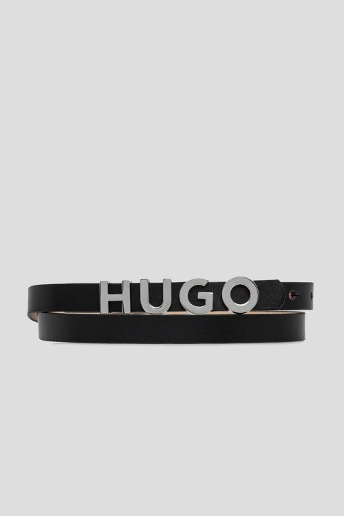 Детали: Женский черный кожаный ремень Zulaот Hugo Boss (Хуго Босс). Модель из гладкой кожи, металлическая пряжка в виде логотипа. Ширина: 1,5 см