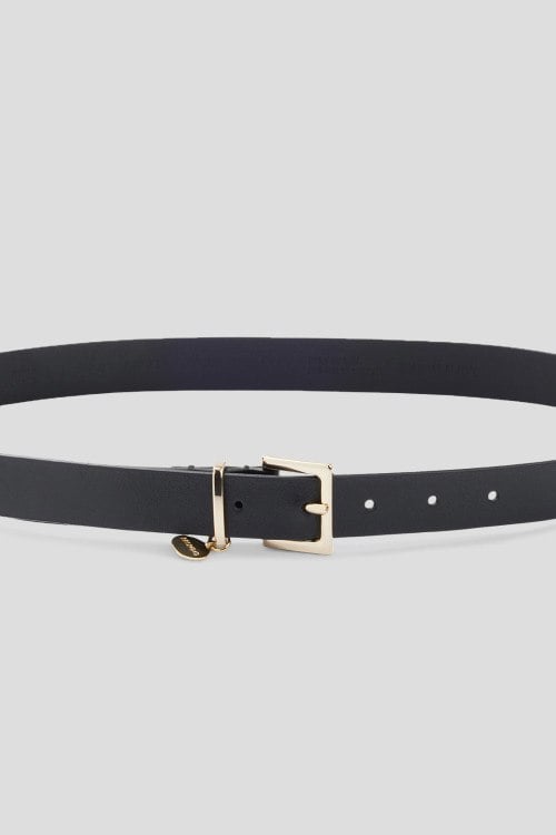 Детали: Женский черный кожаный ремень от Hugo by Hugo Boss (Хуго бай Хуго Босс). Модель из гладкой кожи, золотистая пряжка