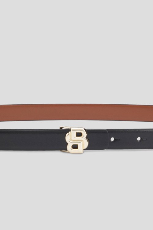 Детали: Женский кожаный ремень B Icon-G от Hugo Boss (Хуго Босс). Модель черно-коричневого цвета из гладкой кожи, металлическая пряжка в виде логотипа