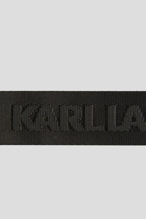 Детали: Женский черный текстильный ремень Klxcd Webbing от Karl Lagerfeld (Карл Лагерфельд). Вышитый логотип по всей поверхности, черная пряжка с тиснением логотипа