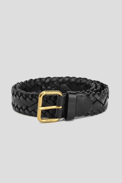 Детали: Женский черный кожаный ремень от Max Mara Weekend (Макс Мара Викенд). Модель из гладкой кожи, плетеный дизайн, золотистая пряжка с логотипом