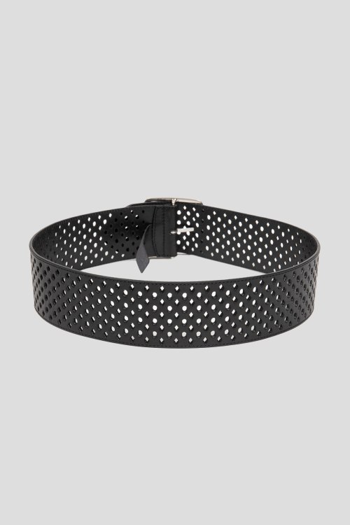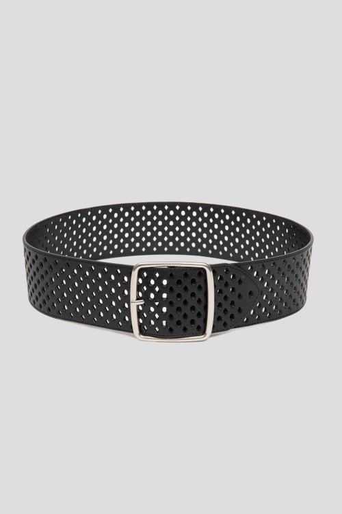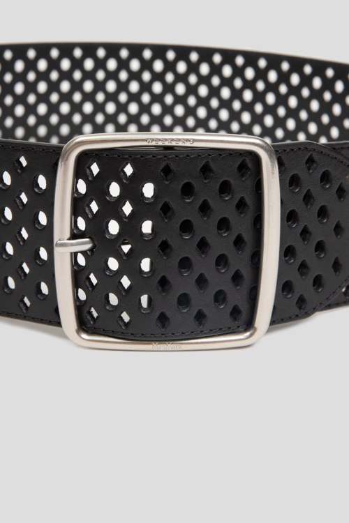 Детали: Женский черный ремень из натуральной кожи от Max Mara Weekend (Макс Мара Викенд). Перфорированный дизайн, регулируемый размер, металлическая пряжка. Измерения: длина - 94 см, ширина - 6,5 см