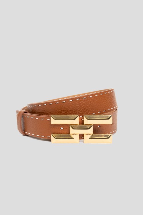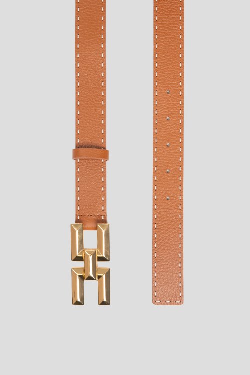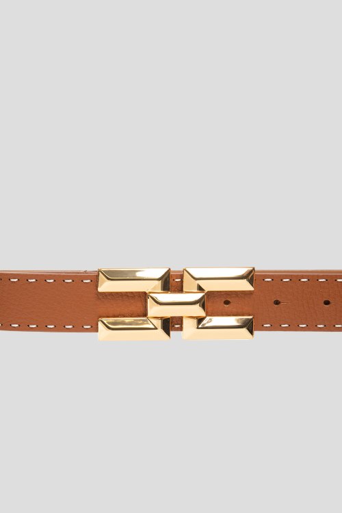 Детали: Женский коричневый ремень из натуральной кожи от Elisabetta Franchi (Елизабетта Франчи). Регулируемый размер, металлическая пряжка в виде логотипа бренда. Измерения: ширина - 3,5 см