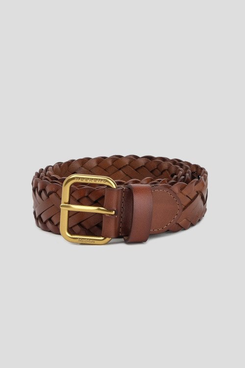 Детали: Женский коричневый кожаный ремень от Max Mara Weekend (Макс Мара Викенд). Модель из гладкой кожи, плетеный дизайн, золотистая пряжка с логотипом
