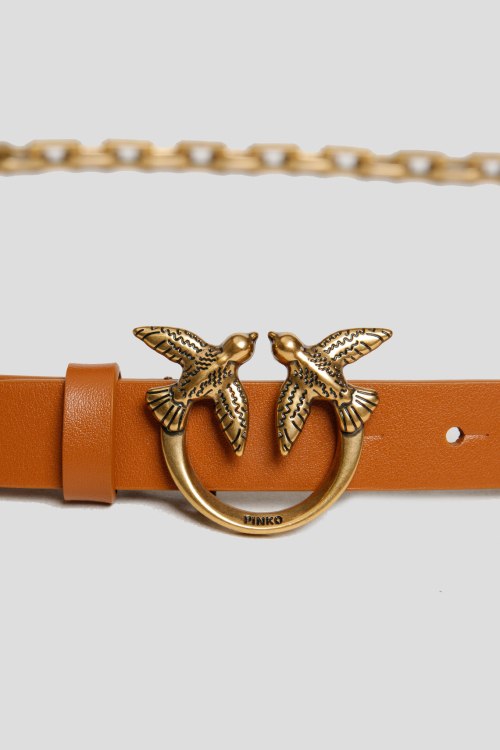 Детали: Женский коричневый ремень Love Birds из натуральной кожи и металла от Pinko (Пинко). Металлическая пряжка Love Birds Diamond Cut, вставкой в виде металлической цепочки с объемными прямоугольными звеньями. Измерения: рассчитан на обхват: 74 см - 84 см (длина ремня 91 см), ширина 2 см