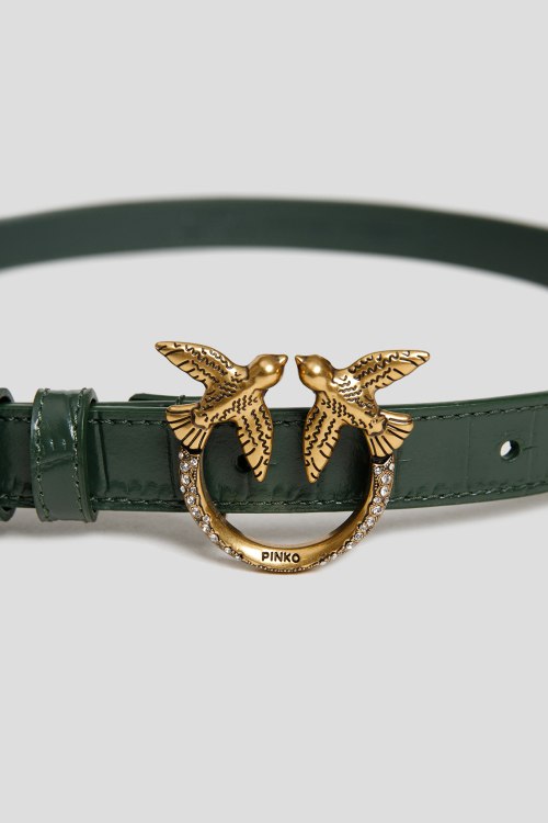 Детали: Женский темно-зеленый ремень Love Berry Simply из натуральной кожи от Pinko (Пинко). Регулируемый размер, тиснение под кожу питона, металлическая пряжка Love Birds Diamond Cut, логотип бренда. Измерения: рассчитан на обхват: 74 см - 84 см (длина ремня 91 см ) , ширина 2 см