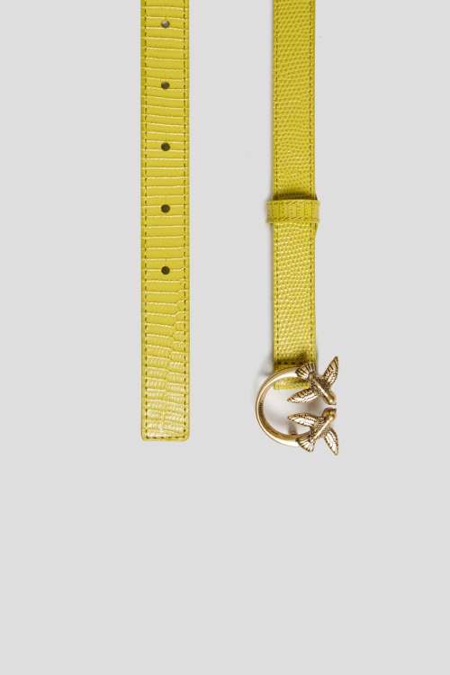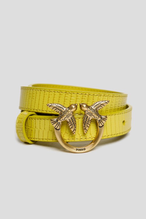 Детали: Женский желтый ремень Love Jewel Mirror Belt из натуральной кожи от Pinko (Пинко). Регулируемый размер, тиснение под кожу питона, металлическая пряжка Love Birds Diamond Cut, логотип бренда. Измерения: рассчитан на обхват: 74 см - 84 см (длина ремня 91 см ) , ширина 2 см
