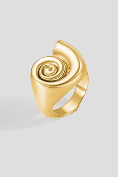 Женское золотистое кольцо из серебра от Poche (Поше). Модель Nautilus Ring для истинных поклонниц изысканных аксессуаров, лаконичное и в то же время массивное