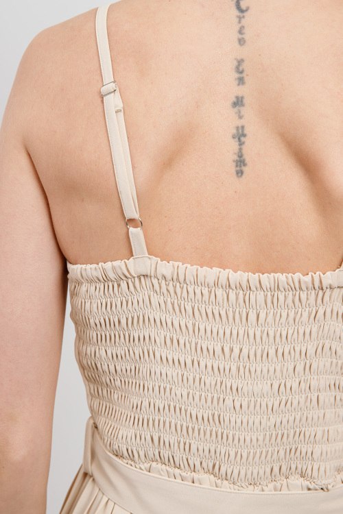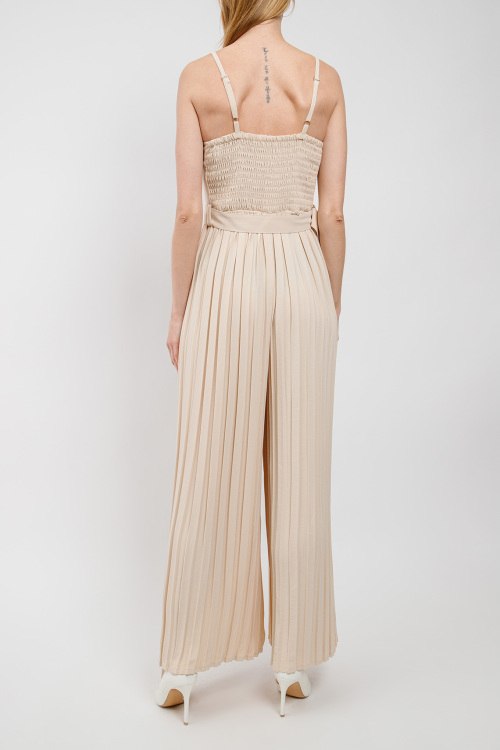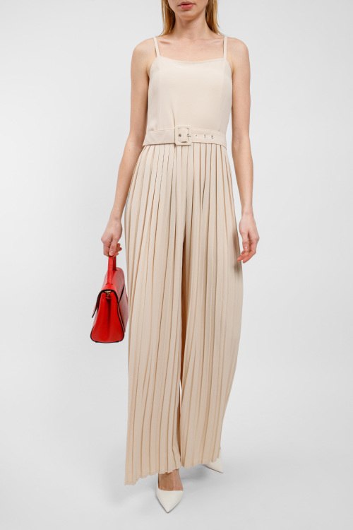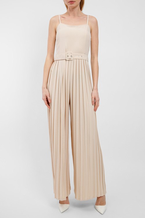 Детали: Женский бежевый комбинезон из полиэстера от Lascana (Ласкана). Открытый верх, тонкие регулируемые бретели, эластичная резинка на спинке, плиссированные брюки свободного силуэта