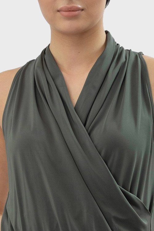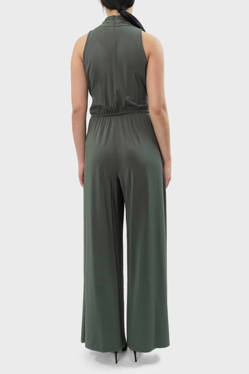 Детали: Женский темно-зеленый комбинезон из вискозы Nettare от Max Mara Weekend (Макс Мара Викенд). Модель без рукавов, верх на запах, в талии с тонким поясом, широкие брюки, полная длина