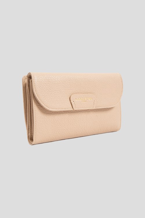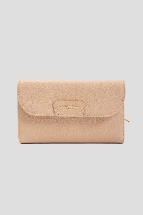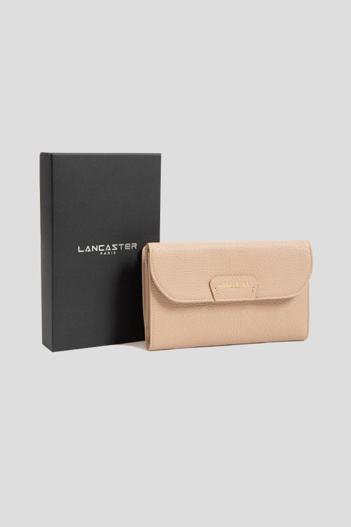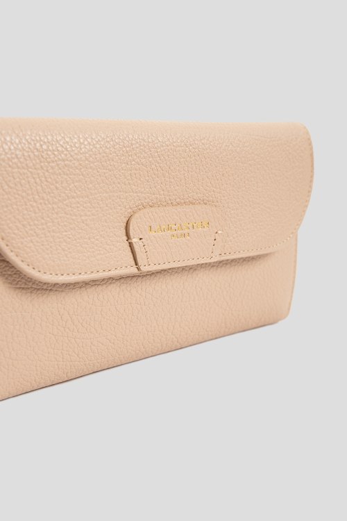 Детали: Женский бежевый кошелек из натуральной кожи от Lancaster (Ланкастер). Прямоугольная форма, застежка на кнопку, слоты для кредитных карточек и визиток, логотип бренда, отделение для купюр, фирменная упаковка. Размер: высота 16 см, ширина 19 см, глубина 3 см