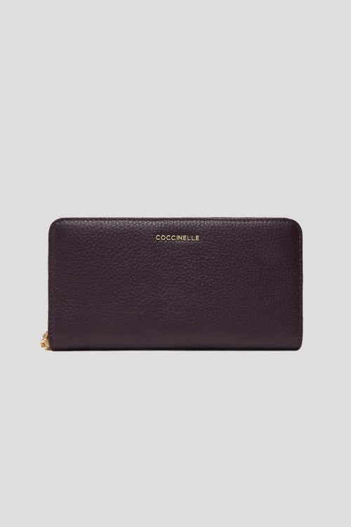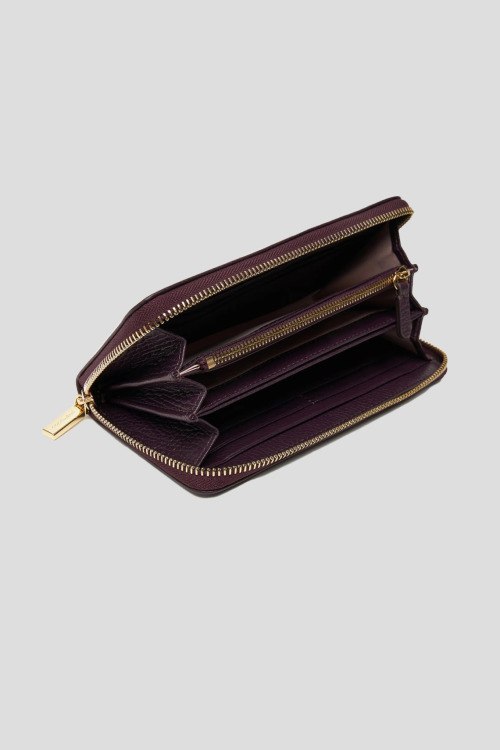Детали: Женский бордовый кожаный кошелек Metallic Soft от Coccinelle (Кочинелле). Модель из зернистой кожи, логотип спереди, золотистая фурнитура, застежка-молния, внутренние отделения для купюр, монет и кредитных карт. Размеры: 19 x 10 x 2 см