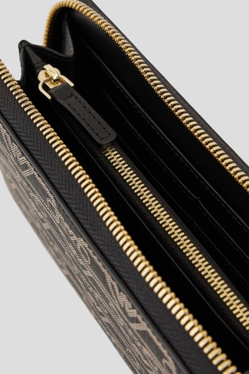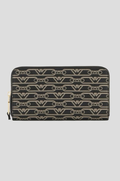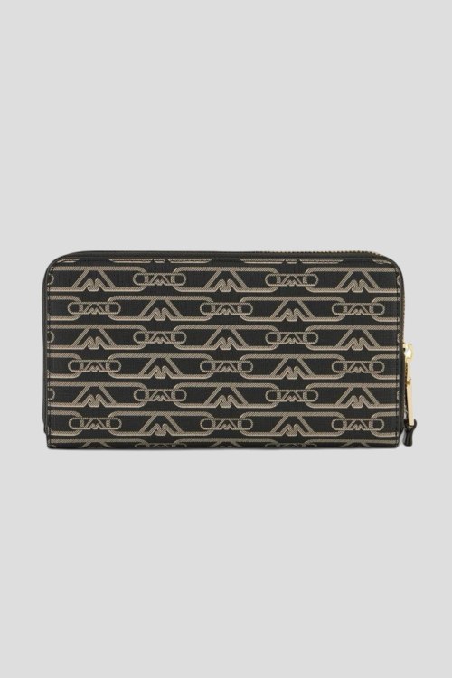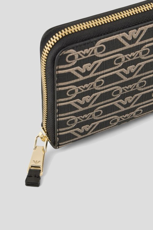 Детали: Женский черный текстильный кошелек от Emporio Armani (Эмпорио Армани). Вышитая монограмма, застежка-молния, отделения для купюр, монет и кредитных карт. Размер: 19 х 2.5 х 10.5 см