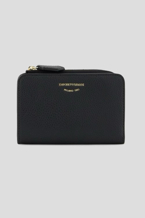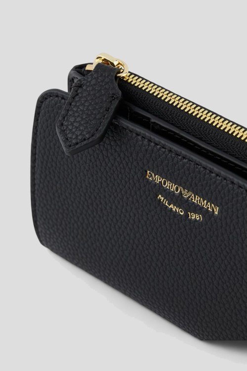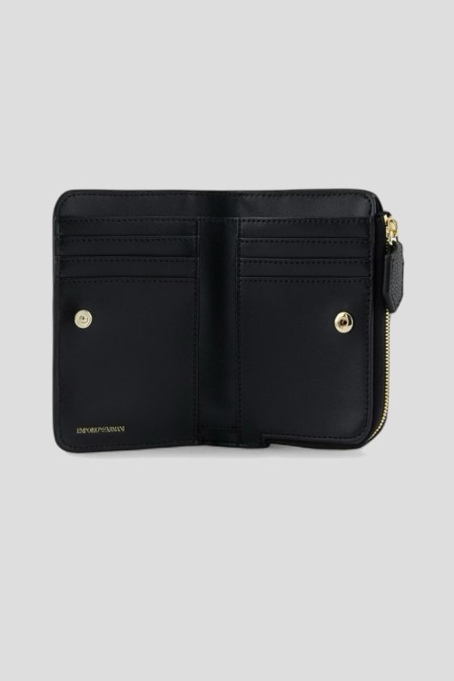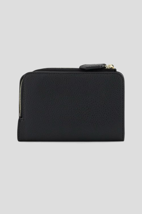 Детали: Женский черный кошелек из экокожи от Emporio Armani (Эмпорио Армани). Принт с логотипом, застежка на кнопку, отделения для купюр, монет и кредитных карт. Размер: 13 х 9 х 1.5 см