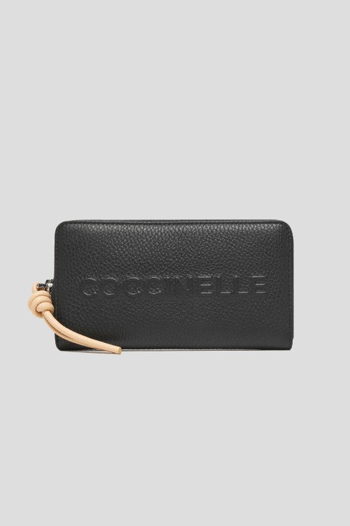 Детали: Женский черный кожаный кошелек C-Me от Coccinelle (Кочинелле). Модель из зернистой кожи, логотип спереди, серебристая фурнитура, застежка-молния, внутренние отделения для купюр, монет и кредитных карт. Размеры: 18 x 10 x 2 см