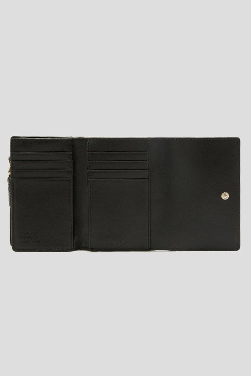 Детали: Женский черный кожаный кошелек 1927 от Furla (Фурла). Модель из гладкой кожи, значок логотипа, золотистая фурнитура, застежка на кнопку, внутренние отделения для купюр, монет и кредитных карт. Размер: 10 х 13 х 2,5 см
