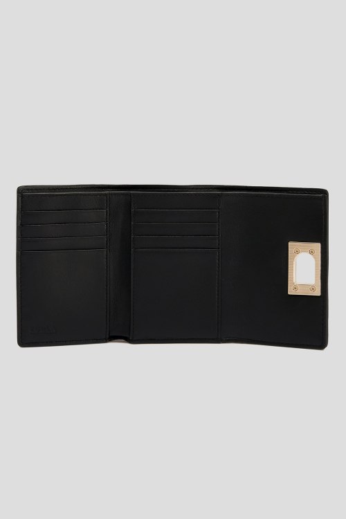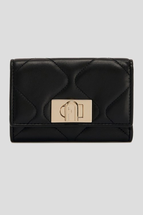 Детали: Женский черный кожаный кошелек 1927 от Furla (Фурла). Модель из гладкой кожи, стеганый дизайн, значок логотипа, золотистая фурнитура, застежка на защелку, карман на молнии сзади, внутренние отделения для купюр и кредитных карт. Размеры: 13 x 9 x 2 см
