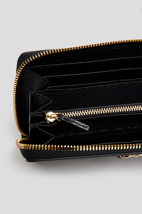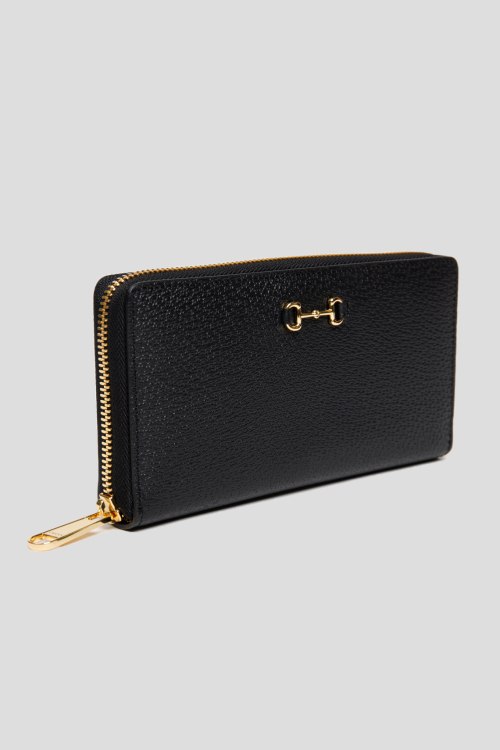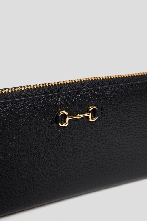 Детали: Женский черный кошелек Horsebit из натуральной кожи от Gucci (Гуччи). Прямоугольная форма, застежка на молнию, 12 отделений для карт, карман для монет на молнии, три отделения для купюр, металлический логотип бренда золотистого цвета, в комплекте фирменная упаковка и пыльник. Измерения: 19х10х2 см