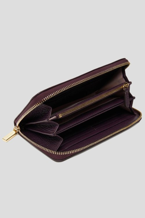 Детали: Женский темно-фиолетовый кожаный кошелек Metallic от Coccinelle (Кочинелле). Модель из зернистой кожи, логотип спереди, золотистая фурнитура, застежка-молния, внутренние отделения для купюр, монет и кредитных карт. Размеры: 19 x 10 x 2 см