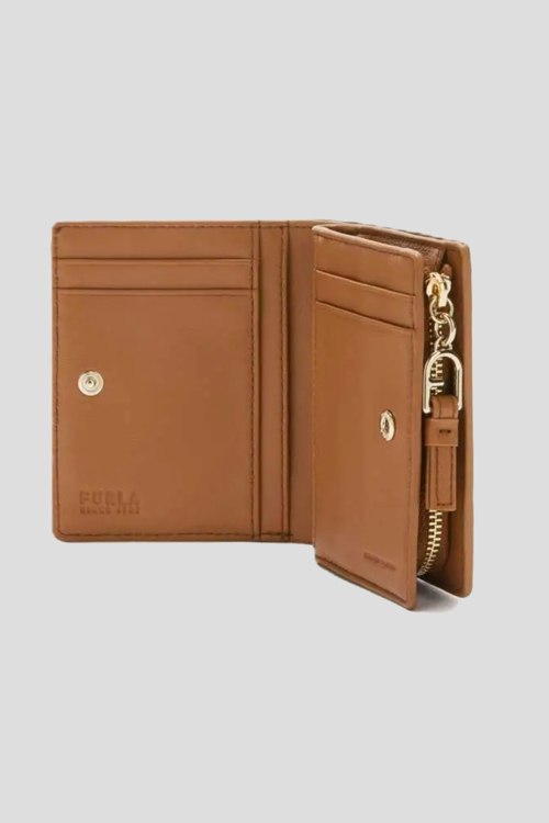 Детали: Женский кожаный кошелек цвета кэмел Nuvola от Furla (Фурла). Модель из гладкой кожи, логотип спереди, золотистая фурнитура, застежка-молния, внутренние отделения для купюр, монет и карт. Размеры: 11 х 9 х 3 см