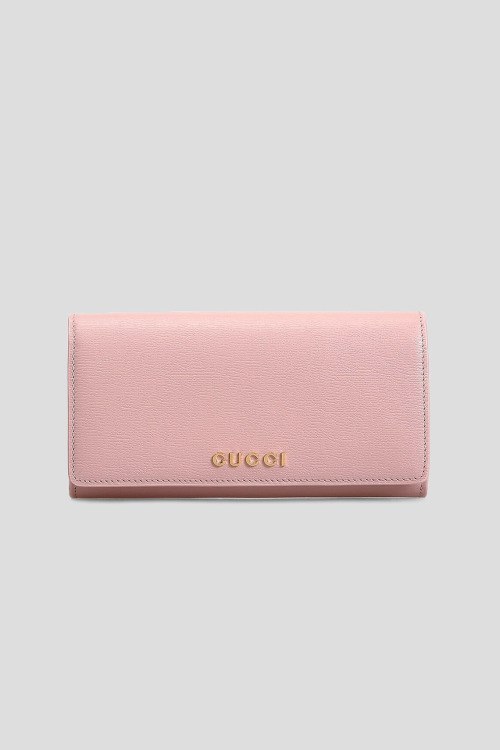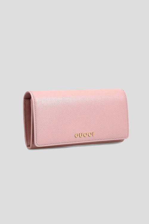 Детали: Женский розовый кожаный кошелек Continental от Gucci (Гуччи). Золотистый логотип, откидной верх с застежкой на кнопки, несколько отделений, внутренние отделения для карт, отделение для купюр, внутренний карман на молнии, золотистая фурнитура. Размеры: 10,5 см х 19 см х 4,5 см