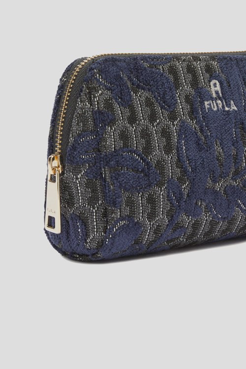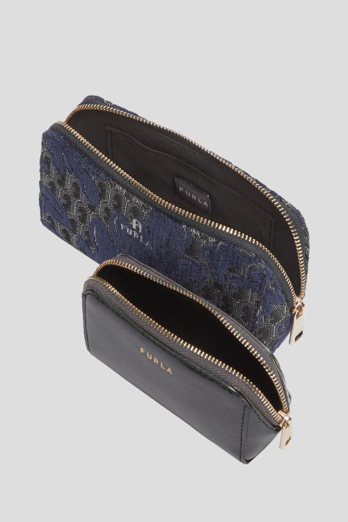 Детали: Женский набор из двух косметичек Camelia от Furla (Фурла). Темно-синий и серебристый цвет, значок с логотипом, золотистая фурнитура, застежка-молния, одно отделение. Размеры: 14,5 x 9 x 4,5 см