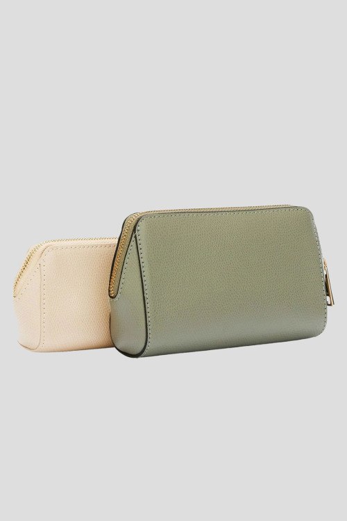Детали: Женский набор из двух кожаных косметичек Camelia от Furla (Фурла). Оливковый и бежевый цвет, модель из зернистой кожи, значок логотипа, золотистая фурнитура, застежка-молния, одно отделение. Размер: 14 х 9 х 4,5 см / 10,5 х 7 х 4 см