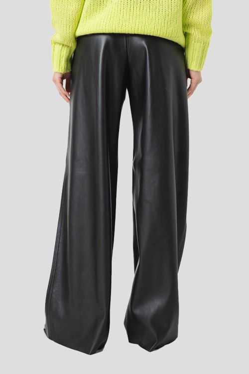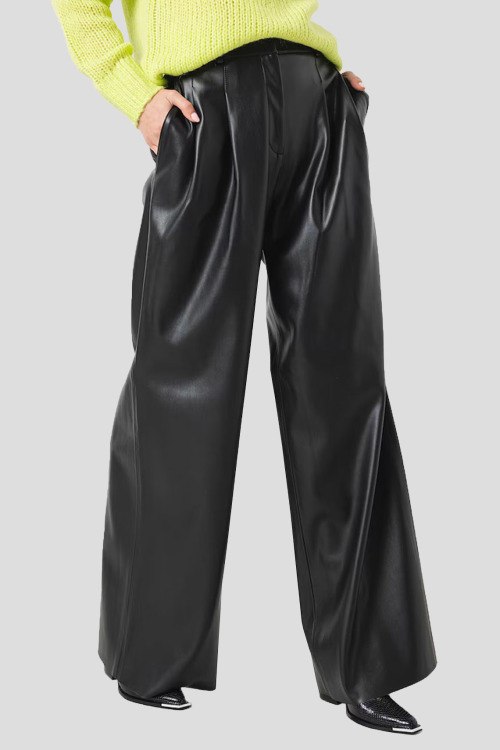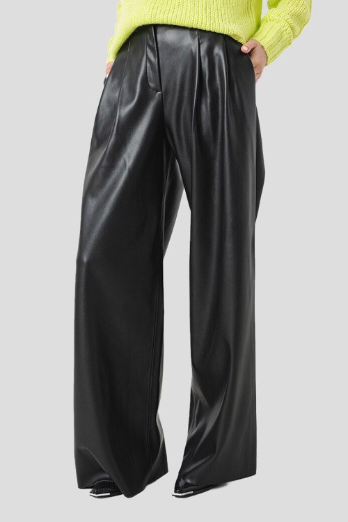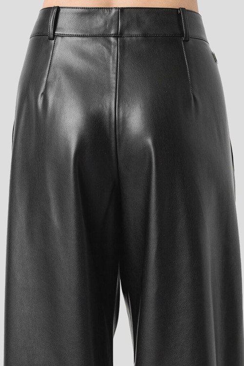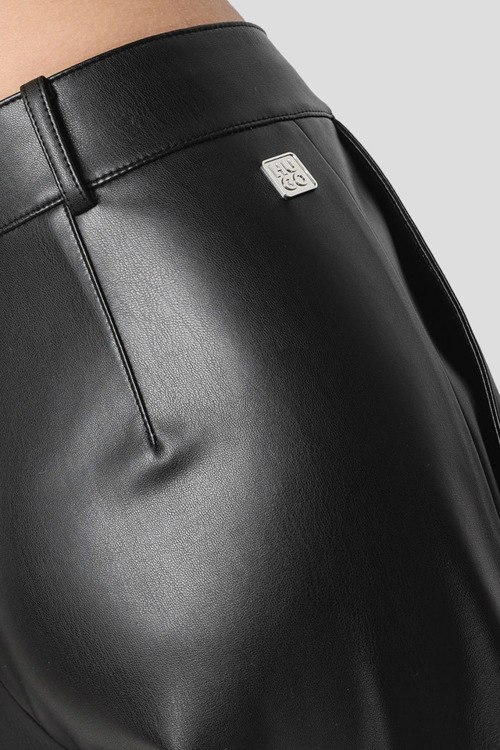 Детали: Женские черные брюки-палаццо Hawine из экокожи от Hugo by Hugo Boss (Хуго бай Хуго Босс). Высокая посадка, застежка на молнию и крючок, прорезные карманы, расклешенная модель, петли в поясе для ремня