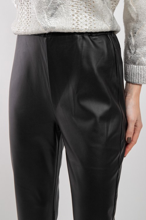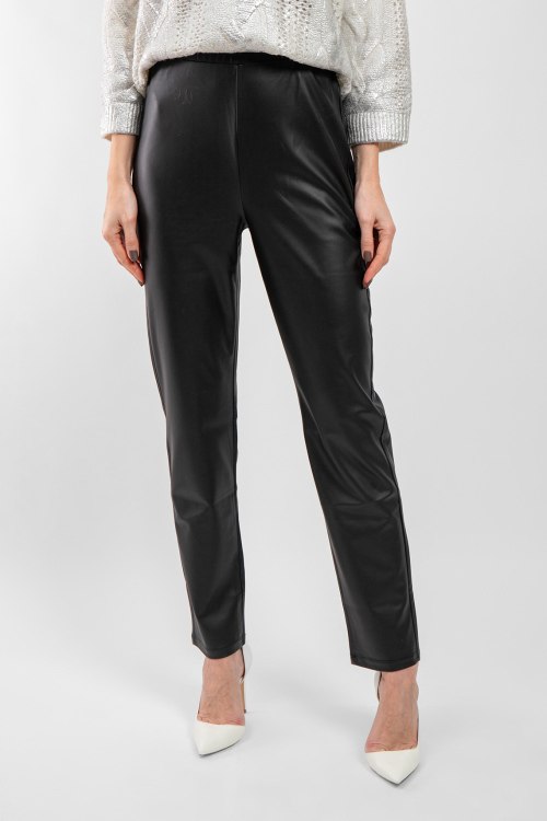 Женские черные брюки из экокожи Zefir от Max Mara Leisure (Макс Мара Лэжэ). Эластичный пояс, прямой крой, полная длина.