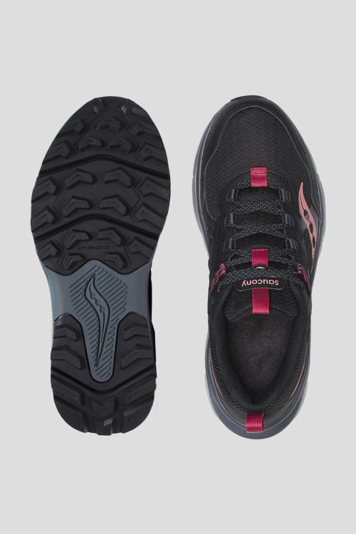 Детали: Женские черные кроссовки Excursion Tr 17 для бега из экокожи и текстиля от Saucony (Сайкони). Комбинированный дизайн, закругленный носок, спереди классическая шнуровка, брендированный принт, петли для подтягивания, амортизация VERSARUN увеличивает удары и снижает давление, что обеспечивает безопасность для комфортных условий проживания. Зубчатые части высотой 4,5 мм гарантируют надежное закрепление на стежках