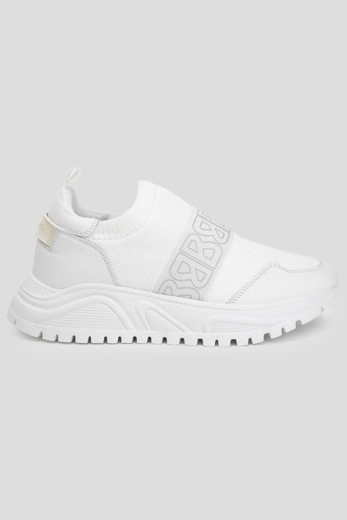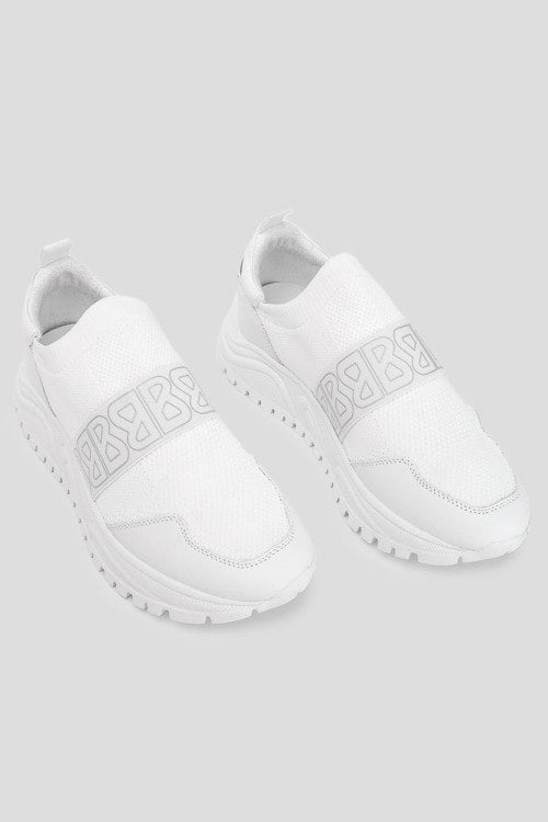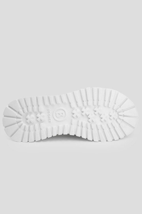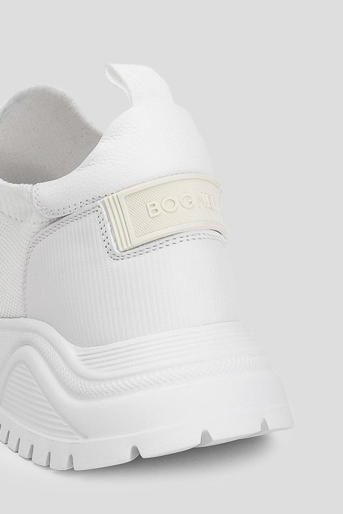 Детали: Женские белые кроссовки из кожи и текстиля Malaga от Bogner (Богнер). Эластичная резинка с монограммой, логотип на пятке, без шнуровки, петля для подтягивания сзади, закругленный носок, белая подошва