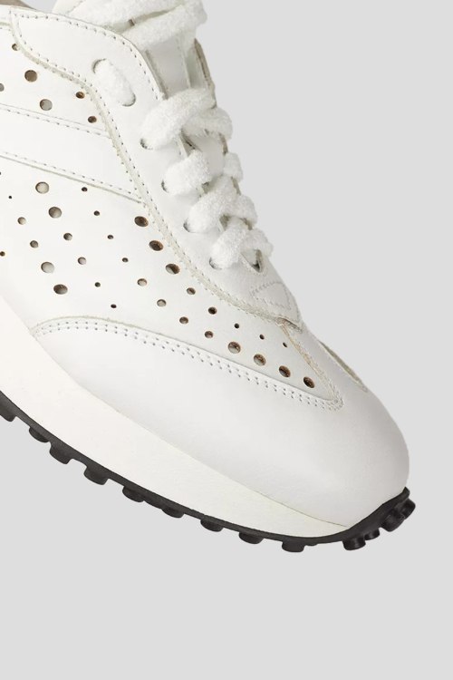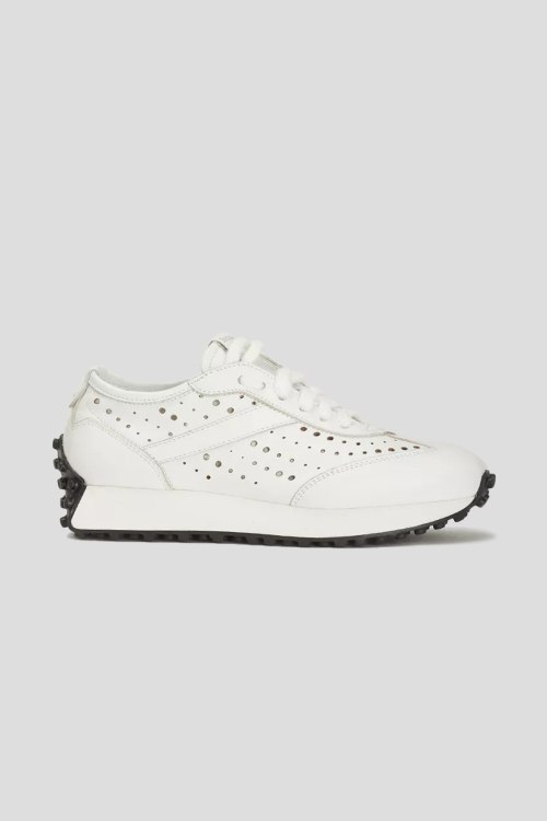 Детали: Женские белые кожаные кроссовки от Doucal's (Дукалс). Модель из гладкой кожи, дизайн с перфорацией, логотип на язычке, классическая шнуровка, закругленный носок