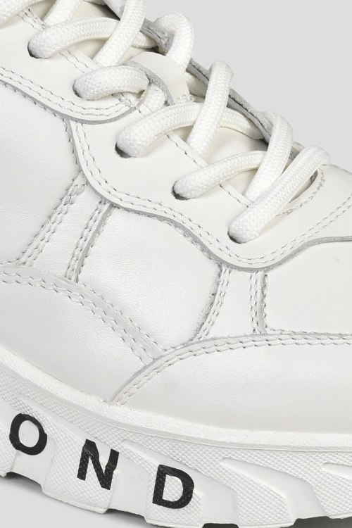 Детали: Женские белые кожаные кроссовки от John Richmond (Джон Ричмонд). Модель из гладкой кожи, логотип на язычке, классическая шнуровка, петля для подтягивания сзади, закругленный носок, брендированная подошва