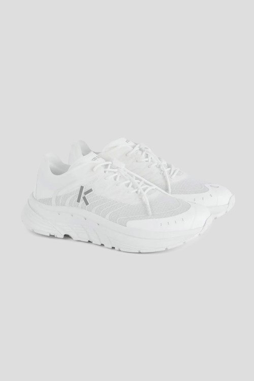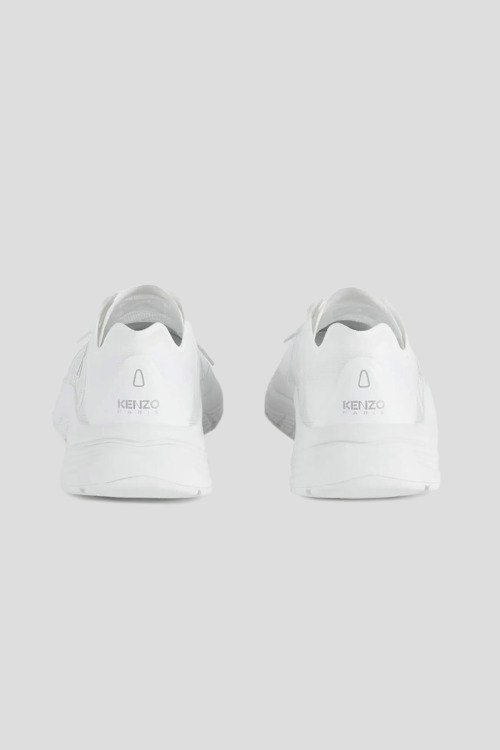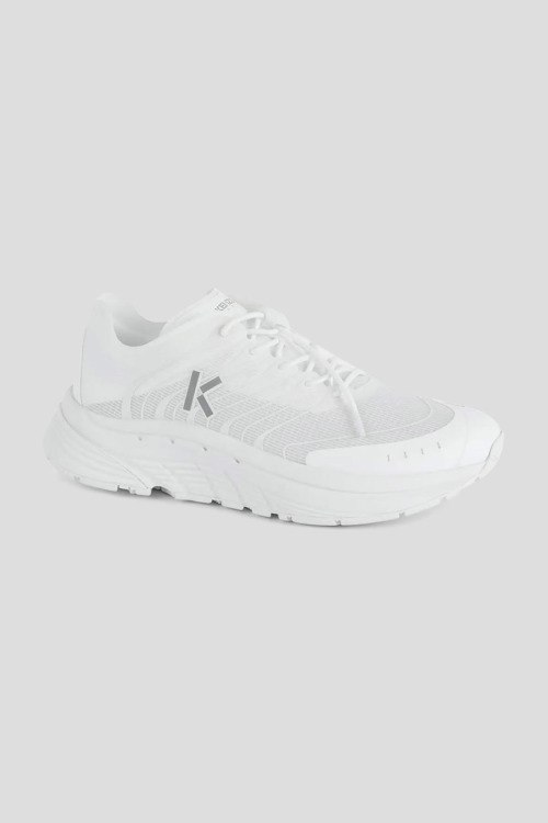 Детали: Женские белые текстильные кроссовки Pace от Kenzo (Кензо). Логотип сбоку и на язычке, классическая шнуровка, закругленный носок
