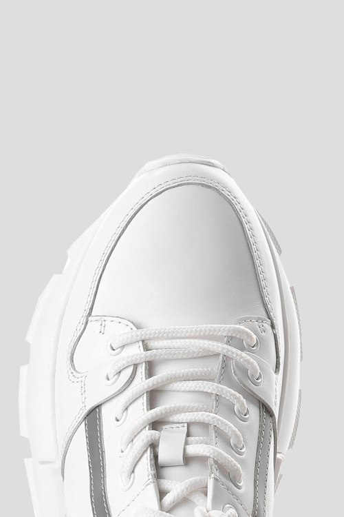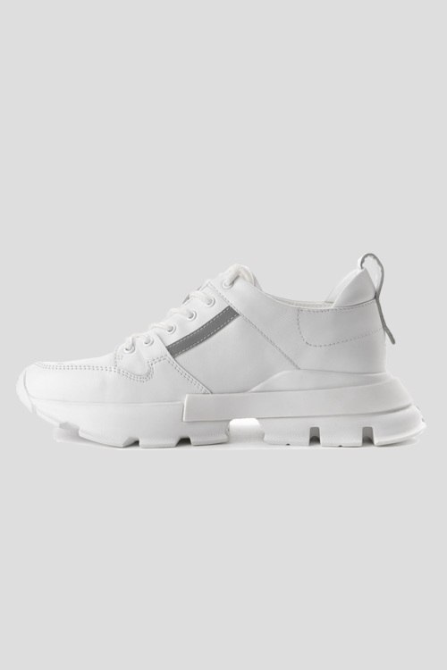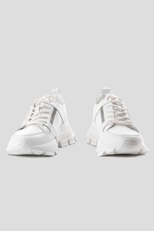 Женские белые кроссовки из натуральной кожи от Le Berdes (Ле Бердес). Классическая шнуровка, петля для подтягивания, миндалевидный носок, рельефная подошва