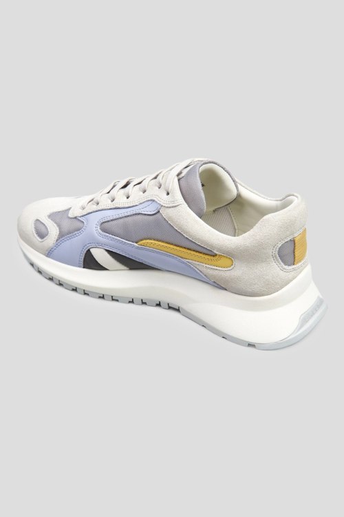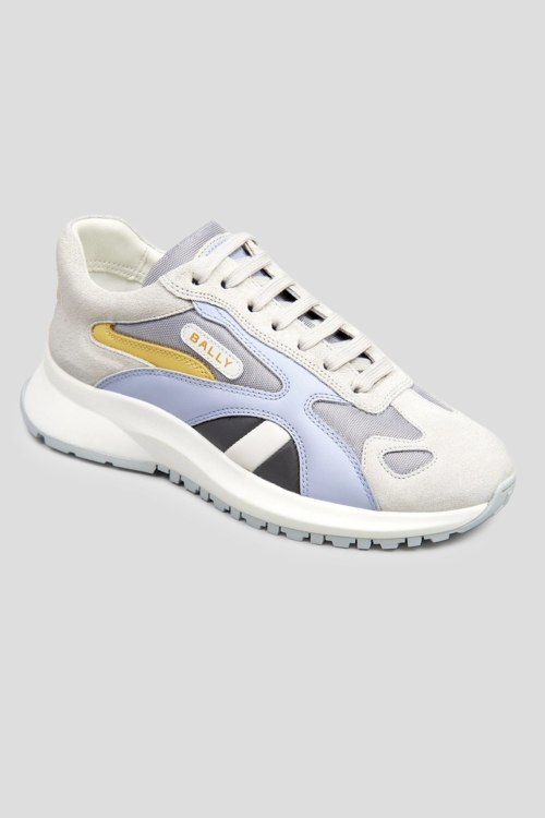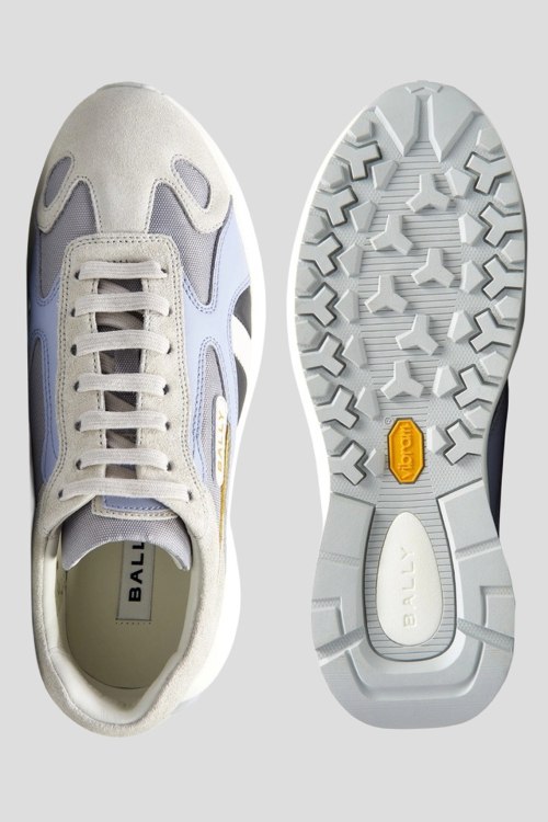 Детали: Женские бело-серые кроссовки из замши и текстиля от Bally (Балли). Комбинация цветов и материалов, логотип сбоку и на язычке, классическая шнуровка, закругленный носок