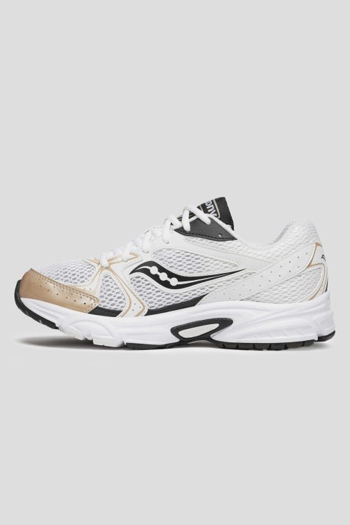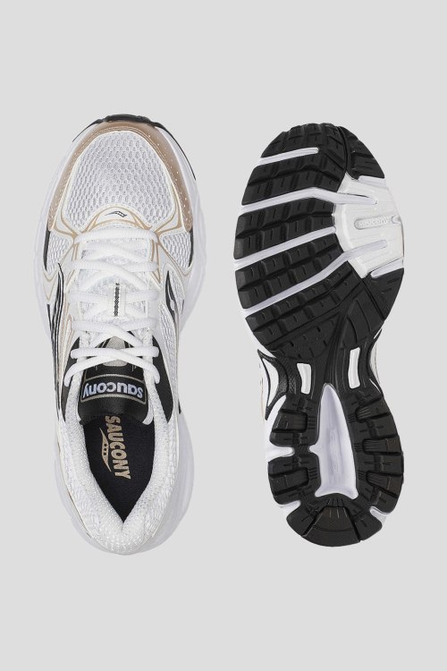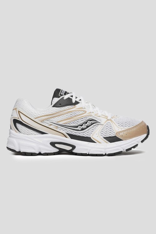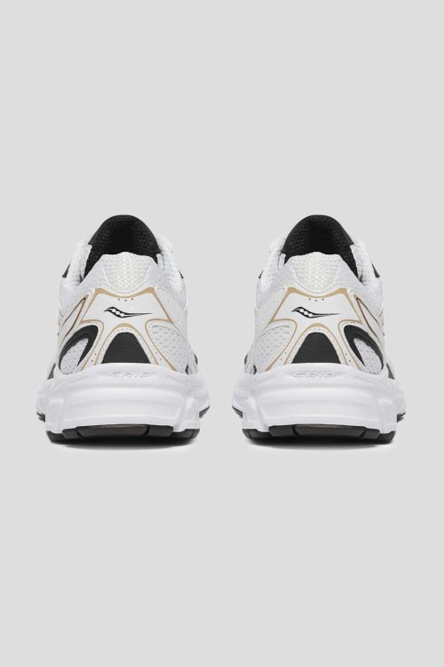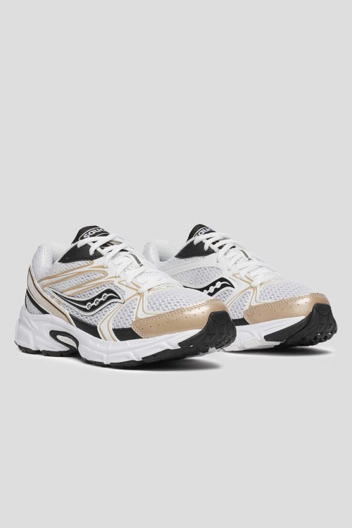 Детали: Женские белые текстильные кроссовки Ride Millennium от Saucony (Сайкони). Комбинация цветов и материалов, логотип сбоку и на язычке, классическая шнуровка, закругленный носок, резиновая подошва