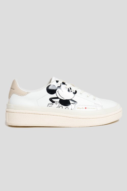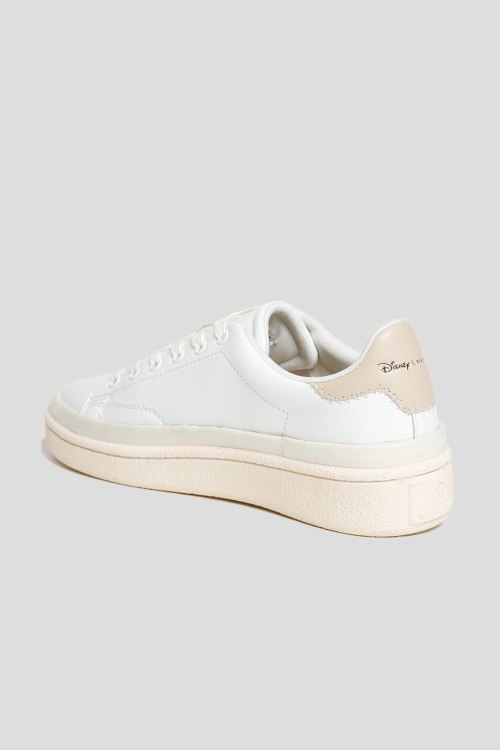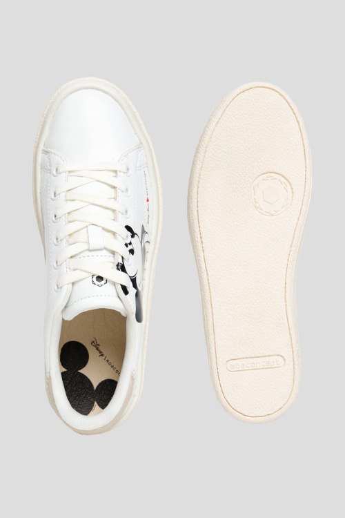 Женские белые кожаные кроссовки Disney от MOA Master of Arts (Мастер Оф Артс). Диснеевский принт, логотип на язычке, классическая шнуровка, закругленный носок, резиновая подошва