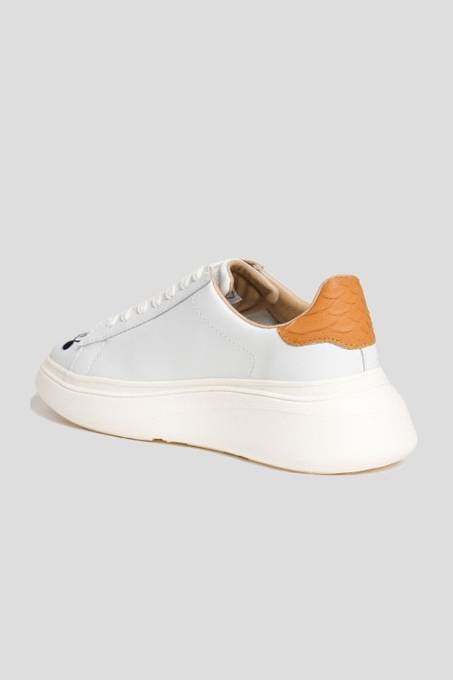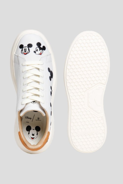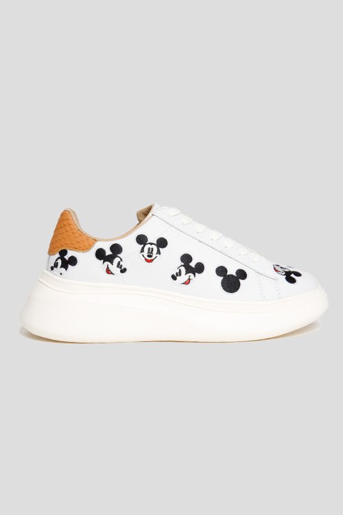Женские белые кожаные кроссовки Disney от MOA Master of Arts (Мастер Оф Артс). Диснеевские нашивки, логотип на язычке, классическая шнуровка, закругленный носок, резиновая подошва