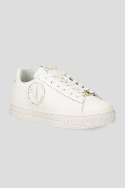 Детали: Женские белые кроссовки из натуральной кожи от Versace Jeans Couture (Версаче Джинс Кутюр). Закругленный носок, спереди классическая шнуровка, резиновая подошва, патч-лого. Высота платформы: 3 см.