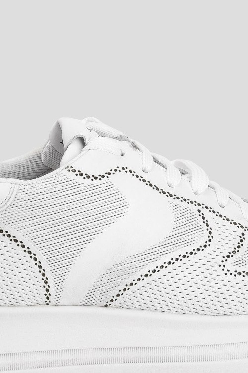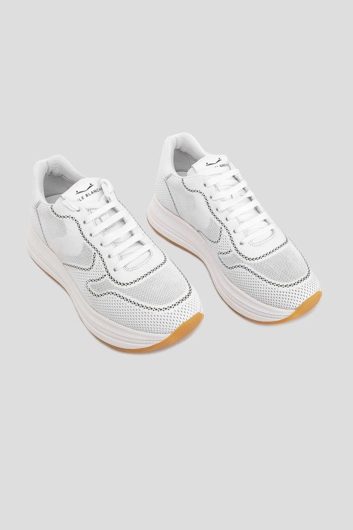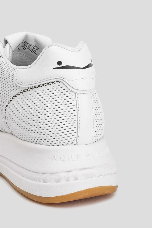 Детали: Женские белые кожаные кроссовки от Voile Blanche (Вуаль Бланш). Модель из гладкой кожи, дизайн с перфорацией, логотип на язычке, классическая шнуровка, закругленный носок, высокая подошва